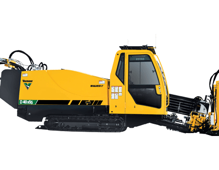 The Vermeer D40x55DR S3 Navigator® horizontal directional drill delivers excellent productivity in a broad range of ground conditions, from hard, medium and soft rock to loamy/dirt and clay. This rock drill features dual rod technology that uses an inner rod to provide torque to the drill bit, while the outer rod offers steering capability and rotational torque for reaming. The combination provides powerful downhole cutting action and the flexibility to select the appropriate tooling to best match the ground conditions, which can allow the entire install to be completed with one machine.