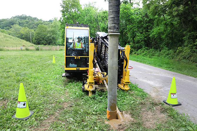 Powered by a 140-hp (104-kW) John Deere diesel engine, this drill serves up to 40,000 lb (177.9 kN) of thrust/pullback and 5500 ft-lb (7,457 Nm) of rotational torque, enabling boring through hard rock with less hassle.